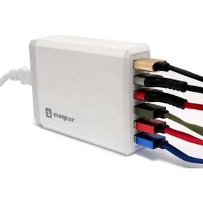 Transforme sua tomada em uma estação de carregamento usb em 6 portas, permitindo que você e sua familia ou amigos carreguem simultaneamente seus dispositivos.