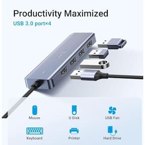 Com o Hub Adaptador Ugreen 4 em 1, você pode maximizar as funcionalidades da sua porta USB. É a solução perfeita para ambientes que exigem uma variada de conexões, sejam eles de trabalho, estudo ou lazer. Beneficie-se da alta velocidade de transmissão de dados. Seja para transferir arquivos pesados, streaming ou qualquer outra tarefa que exija uma conexão rápida, este hub garante eficiência máxima.