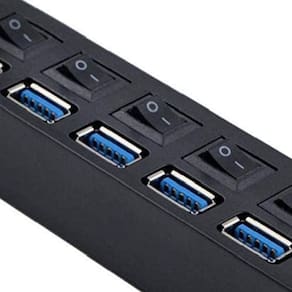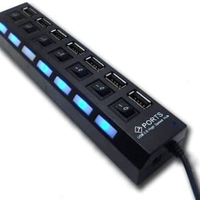 Como os es vendidos atualmente contam com um limitado dessas portas, e cada vez mais temos dispositivos que se conectam aos es por entradas USB, é necessário ter em mãos um instrumento que facilite a conectividade de vários dispositivos em uma única porta USB. O hub é feito em material resistente, possui sete entradas USB, sete indicadores de LED e sete interruptores.