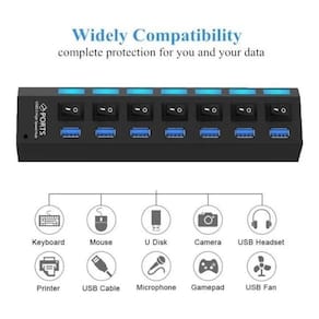 Hub 3. 0 super rápido, adicione 7 entradas usb extras em seu computador ou notebook. Pode utilizar todos os acessórios que você quiser, como hd, teclados, mouses, pen drives, celulares, entre outros. Brbr atenção brsuporta somente 1 hd de até 1 tbbrnão recomendado para usar webcam ou hds acima de 1tbbrnão aguenta mais de 1 hd ao mesmo tempobro hub aguenta, mas nenhum computador processa o volume de dados de mais de 1 hd em uma unica porta usbbrbrqualidades do produto:br- design modernobr- taxa de transferência de dados: 1. 5mbps/12mbps/480mbps até 5gbps. Br- entrada para fonte de alimentação 5v / 1500ma não incluso br- não precisa de fonte para utilizar, é um recurso adicional para usar hds externos em notebookbr- leds indicativos de porta ligada/desligadabr- usb 3. 0 compatível com usb 2. 0 e 1. 1brbrcaracterísticas:br- modelo: 3. 0 - 7 portasbr- suporta hd de até 1tbbr- 7 portas com chave liga/desligabr- dimensões aproximadas: 16,5 x 3,5 x 2,5 cmbr- comprimento do cabo: 35cmbrbrcomo usar:br1 - inserir o cabo usb na entrada lateral do hub e na porta usb do seu computadorbr2 - ligar a chave das portas usb que serão utilizadasbr3 - inserir os acessórios usb desejadosbrbrconteúdo da embalagem:br- 01 hub 3. 0 com 7 portasbr- 01 cabo de dados usbbr- 01 embalagem