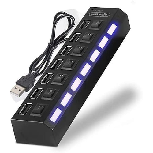 Hub USB 2.0 para expansão das portas USB do seu Computador, Notebook ou Ultrabook, você poderá adaptar uma única entrada USB em até 7 portas Obs: Não transfere dados apenas recebe, então em um HD externo vai servir somente para receber os arquivos Capaz de conectar até 7 dispositivos USB simultaneamente como HD externo, impressora, Pendrive, Mouse, Teclado em poucos segundos.