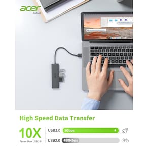 Acer Hub USB 4 portas, vários hub USB 3.0, divisor USB A para laptop com porta de alimentação USB C, extensor USB para laptop, Windows, Linux, Acer PC e mais - Hub USB 3.0 de 4 portas: o hub USB Acer estende seu dispositivo com 4 portas USB 3.0 adicionais, ideal para conectar periféricos USB como pen drive, mouse, teclado, impressora. Observação: Esta porta USB C (com impressão IN 5V) não pode ser usada para transferência de dados e carregar outros dispositivos. Ele só pode fornecer energia para as outras 4 portas USB A, o que pode tornar a transferência de dados mais estável. - Transferência de dados de 5 Gbps: o adaptador USB é projetado com 4 portas de dados USB 3.0, você pode transferir filmes, fotos e arquivos em segundos a uma velocidade de até 5 Gbps. Ao conectar dispositivos que requerem energia, você pode carregar através da porta de alimentação USB C de 5V para garantir uma transmissão de dados estável e rápida. - Excelente design técnico: chip GL3510 avançado integrado com bom design térmico, mantendo seus dispositivos e dados seguros. Plug and Play, sem necessidade de driver, suporta 4 portas para funcionar simultaneamente e pode melhorar a eficiência do seu trabalho. - Design portátil e ampla compatibilidade: a extensão USB para PC é fina e leve com um cabo de 200 cm, facilitando o transporte para qualquer lugar. Este conector USB com Windows, Linux, Thinkpad, Acer Swift/Aspire/Spin e outros modelos Acer, laptop, PC, desktop. - Ampla compatibilidade: Feita com uma caixa de alta qualidade para maior durabilidade e dissipação de calor, esta expansão USB-A é para Acer, XPS, PS4, Xbos, laptops e funciona em Windows, ChromeOS, Linux.