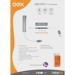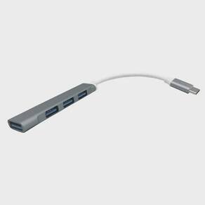 Hub usb-c tipo-c 3 portas usb 2. 0 1 porta usb 3. 0 cinza hb104 - conexão: usb-c - 4 portas de saída usb - energia: 5v/500ma - material: alumínio - taxa de transferência: 480mbps - compatível com windows xp,2000,vista,7,8,10, linux, android - dimensões: 9 x 13,7 x 22 cm - peso: 24g
