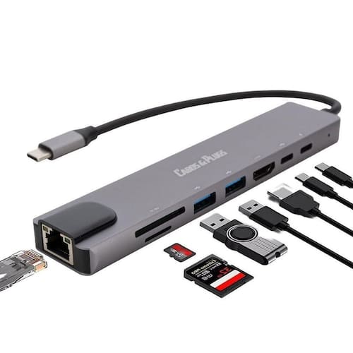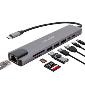 O hub usb-c mais completo. 4k, portas 3. 0, porta de carregamento usb-c, porta usb-c, leitor de cartões e entrada de rj45 lan. Visual em alumínio e portátil para todas as funções que oferece. Compátivel com a maior parte dos dispositivos usb tipo c, de computadores, laptops a celulares, tablets e games. Especificações: