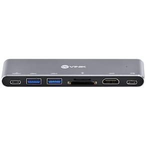 Hub Usb Tipo C Type C 7 Em 2 - 2 Usb 3.0 + Leitor De Cartão Sd Tf + Hdmi + Thunderbolt 3 + Power Delivery 100w Hc-72 A linha Tipo C (Type C) é a mais recente aplicação dos padrões USB. Praticamente todos os novos dispositivos lançados no mercado recentemente contam com pelo menos uma porta tipo C, como smartphones, notebooks, computadores, pendrives, etc. O HUB HC-72 da Vinik permite a extensão de 2 saídas tipo C, ramificando para 2 portas USB 3.0, HDMI, leitor de cartão SD e TF, 1 porta Thunderbolt 3 e 1 porta USB tipo C com Power Delivery de 60W. O recurso Power Delivery permite o carregamento do dispositivo conectado mesmo com o HUB em . Conexão: USB tipo C / type C Interface: USB 3.0 Velocidade: 5 Gbps