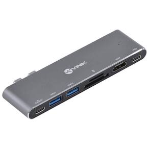 A linha tipo c (type c) é a mais recente aplicação dos padrões usb. Praticamente todos os novos dispositivos lançados no mercado recentemente contam com pelo menos uma porta tipo c, como smartphones, notebooks, computadores, pendrives, etc. O hub hc-72 da vinik permite a extensão de 2 saídas tipo c, ramificando para 2 portas usb 3.0, hdmi, leitor de cartão sd e tf, 1 porta thunderbolt 3 e 1 porta usb tipo c com power delivery de 60w. O recurso power delivery permite o carregamento do dispositivo conectado mesmo com o hub em uso.
