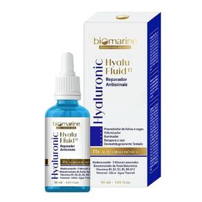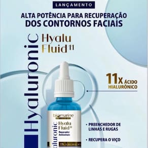Biomarine Hyalu Fluid 11 é um reparador antissinais ultra inovador e potente porque é composto por 11 moléculas diferentes de Ácido Hialurônico, capazes de atuar desde as camadas mais superficiais até as mais profundas da pele, reparando os sinais de envelhecimento e preenchendo as linhas de expressão.Além disso, a alta carga de Ácido Hialurônico associada às diversas vitaminas do complexo B (como B1, B2, B3, B5, B9) e ao ativo Madecassoside, promove a reparação e estímulo para a produção de Colágeno!Um produto ideal para todos os tipos de pele, inclusive as sensíveis, pois é produzido com 100% de Água Termal.Benefícios e características:- Reparador antissinais- Repõe diariamente o ácido hialurônico perdido- Rápida absorção. Toque seco- Antirrugas- Ideal para todos os tipos de pele- 302% de aumento da produção de ácido hialurônico ATIVOS:- Madecassoside- 5 Minerais associados- Bioestimulador de Ácido Hialurônico- Vitaminas B1, B2, B3, B5, Bo B12- Pantenol- Silício- Água Thermal Modo de usar: Após higienizar a face com o sabonete, aplicar o Hyaluronic Hyalu Fluid sobre toda a face e massagear até completa absorção. Aplicar duas vezes ao dia.