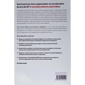 SINOPSE NÃO FIQUE PARA TRÁS. A ERA DA INTELIGÊNCIA ARTIFICIAL ESTÁ MOLDANDO OS NOVOS LÍDERES, E ESTE LIVRO É O GUIA ESSENCIAL PARA QUEM DESEJA PROSPERAR NESSE CENÁRIO!Em IA para líderes: do conceito à realidade, Vinicius David guia executivos e gestores para não apenas entender, mas implementar a inteligência artificial de maneira estratégica e em escala em suas organizações, aumentando a produtividade, impulsionando a inovação e preparando as empresas para os desafios do futuro.Com este livro, você vai:Superar os desafios da transição digital com confiança e desenvolver uma cultura de inovação orientada por dados em sua empresa;Identificar oportunidades para aplicar a IA de maneira eficiente e otimizar processos;Desenvolver produtos e serviços únicos para se adaptar ao mercado, mesmo sem conhecimento técnico profundo de IA;Explorar casos de sucesso que mostram o impacto real da inteligência artificial em diferentes setores e empresas;Implementar a metodologia PATX para transformar sua empresa em uma organização que coloca a IA em primeiro lugar.