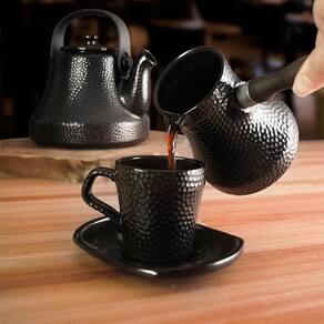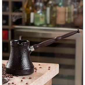 Ibrik Para Café Turco Ceraflame Martelado Chocolate - 500Ml Agora você poderá preparar um cafezinho com toda a tradição e misticismo oriental que só a cafeteira turca Ibrik pode prover. Visto como mais do que uma bebida, o café turco é um ritual único,um momento para conversas, amizades e hospitalidade. Com a a Ibrik, você poderá extrair a charmosa e mística bebida também conhecida como café marriquino ou turco, um café perfumado e encorpado. Além disso, caso tenha a perícia necessária, poderá ainda ler o futuro na borra do café A Ibrik para Café Turco Ceraflame Martelado Chocolate 500ml é fabricada em cerâmica resistente a choques térmicos, a prova de riscos, totalmente atóxico e que possibilita a preservação do calor por mais tempo. Além disso, seu acabamento impecável confere mais requinte ao momento.