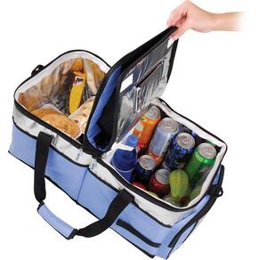 Ice Cooler 48 Litros 2 Divisória Mor O Cooler 48l da Mor traz diversas vantagens para o seu dia a dia ou final de semana ficar ainda mais práticos. Produzido em 100% poliéster com revestimento em PVC, ele é espaçoso, resistente e super útil para manter a temperatura de seus lanches ou bebidas quentes ou frios.Possui sistema inteligente de coleta, sendo uma abertura de cada lado em sua parte superior, que facilita a retirada dos itens sem comprometer a temperatura dos mesmos. Fácil de carregar possui alça de ombro e de mão estofada, além de ser dobrável, ficando pequeno e prático de guardar. Internamente possui um plástico removível que facilita sua limpeza e higiene. Conta ainda com um sistema de velcros que deixa o cooler mais compacto. Ele possui dois compartimentos separados, onde você pode dispor alimentos quentes e as bebidas geladas e mantê-los conservados por muito mais tempo. Sem gelo, o cooler comporta até 64 latas de 350ml. É muito espaço. Capacidade: 48 litros (64 latas de 350 ml.) Dimensões do produto: 56cm x 31cm x 26cm