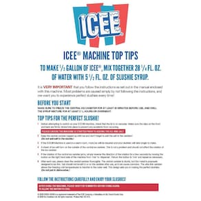 Com apenas água, gelo e xarope aromatizante ICEE vendido separadamente, você terá sua bebida congelada favorita pronta para beber em minutos