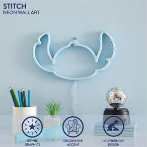 Idea Nuova Disney Stitch Neon Figural LED Pendurado Arte de Parede, Decoração de Parede para Quarto/Quarto Infantil, 17,3 cm x 28 cm - Design de costura autêntico: iluminação figura neon mostrando o emblemático Stitch. Produto Authenthic Stitch, garantindo qualidade e design de alta qualidade. Ideal para fãs de Stitch de todas as idades, adicionando um toque divertido aos quartos, salas de estar ou salas de jogos e muito mais! - Luz LED vibrante: As luzes LED brilhantes e energeticamente eficientes criam um ambiente mágico em qualquer espaço. Quando ligadas, as luzes LED integradas ao design iluminam a decoração de pendurar na parede para iluminar uma sala, adicionando um brilho acolhedor e convidativo. - Montagem fácil na parede: Projetado para pendurar sem esforço em qualquer parede, transformando instantaneamente seu espaço com um tema Stitch. A tapeçaria mede 17 cm A x 29 cm L. - Funcionamento por pilha: requer baterias para operação, oferecendo flexibilidade na colocação sem a necessidade de tomadas elétricas. Pendure em qualquer lugar da sua casa! 2 pilhas AA necessárias, não incluídas. - PRESENTE PERFEITO PARA FÃS: Um presente atencioso para aniversários, feriados ou ocasiões especiais. Um item essencial para os fãs do Stitch!