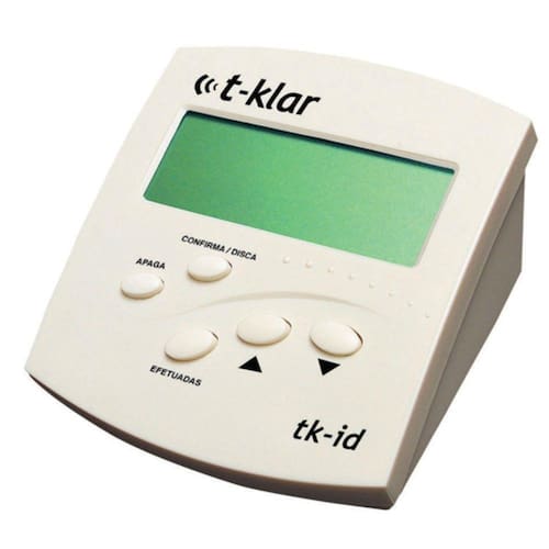 Idenficador de Chamadas Bina T-Klar Tk-Id Branco Com o identificador de chamadas t-klar, por saber a origem das chamadas, o usuário passa a ter mais segurança e tranqüilidade para atender as ligações feitas para sua casa. Características: - Sistema DTMF / FSK - 99 ligações recebidas - 25 ligações efetuadas - Ajuste de contraste do visor - Filtro de DDD - Registra data e hora da ligação - Disponível também nas cores: Preto e Vinho