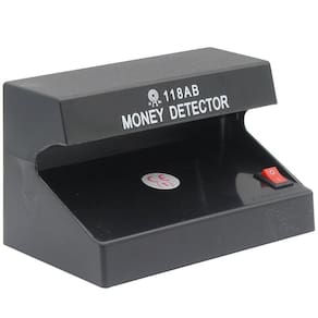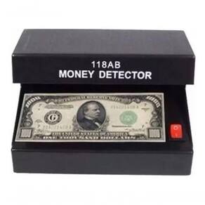 - Este detector aplica radiação ultravioleta para detectar recursos de segurança em papel-moeda.