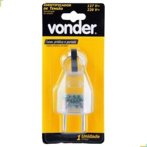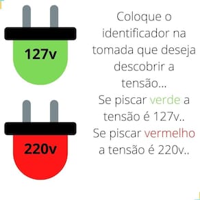 1 identificador de tensão. O identificador evita que aparelhos elétricos sejam ligados na tensão errada. Indicado para identificar a tensão 127 v ou 220 v em tomadas comuns. Ao conectar na tomada, a tensão será indicada através de leds indicadores. Quando a tensão for 127 v, 1 led verde se acende, quando a tensão for 220 v, 1 led vermelho se acende