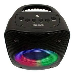 Iluminação Envolvente na Caixa de Som Portátil KTS-1335 Led RGB - Adapte-se ao Bivolt Especificação A transmissão sem fio tocou: até 10 metros Tamanho da unidade do alto-falante: 3 polegadas Potência de saída: 10W Resposta de frequência: 100Hz-20KHZ Relação sinal/ruído: =80dB A varredura FM tocou: 87,5-108,0 MHZ Carregamento USB: DCSV Capacidade da bateria: 1500mAh Suporte máximo de memória USB/SD : 32GB Tempo de reprodução: até 1 hora a 75% de volume Tempo de carregamento: 3 horas Tamanho do produto: 13,4 12,4 17,6 CM