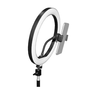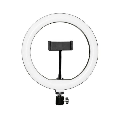 Iluminador de Led Ring Light 10 Polegadas O ring light é muito utilizado por maquiadores, youtubers, vloggers e fotógrafos em geral que buscam melhor a qualidade das suas imagens, principalmente para selfies, retratos e vídeos, já que seu efeito uniformiza a pele, não faz sombras na imagem e realça os olhos. Ele também deixa nítido um desenho redondo no olho da pessoa que está sendo fotografada, sendo um efeito que muitas pessoas querem ter em suas imagens. Com design simples e fácil de operar, este modelo da possui diâmetro de 26cm 10 polegadas , 120 luzes de led, ajuste de brilho e três tipos de cor de luz, com temperatura da cor que pode ser ajustada de 3200K a 6500K. Fabricado em plástico ABS, ele conta ainda com um suporte para celular com haste flexível, um adaptador giratório ball read e um cabo usb para recarregar o iluminador e controlar as principais funcionalidades ajustes, ligar, desligar, etc . O ring light possui orifício de encaixe com padrão de 1/4 polegadas, ideal para uso com diversos modelos de tripés não inclusos . Essa versão vem apenas o iluminador, ideal para quem já possui algum tripé ou deseja adquirir um modelo específico para utilizar junto com ele. Especificações Técnicas: Marca: FUNPro Modelo: I019 Material: ABS Diâmetro externo: 26cm / 10 polegadas Diâmetro interno: 20cm Potência: 12,5W Tipos de cor da luz: 3 Temperatura da cor: 3200K a 6500K Suporte de celular: de 6,0 até 10,0cm Peso: 330g todo o kit Compatibilidade: - Compatível com tripés e acessórios com encaixe de 1/4 polegadas. - Compatível com celulares com largura de tela de 6,0 até 10,0cm. Garantia: Garantia de 90 dias para defeito de fabricação. Itens inclusos: 1 x Ring Light 10 Polegadas 1 x Cabo Usb com Controlador de Ajustes 1 x Ball Head 1 x Suporte para Celular com Haste Observações: Não acompanha tripé, celular ou itens não especificados acima. Imagens meramente ilustrativas.