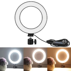 Iluminador Led Circular 10 Ring Light Live Usb Com Suporte De Celular O Iluminador de Led Circular 10 / 26cm Ring Fill Light Live USB Bilvolt com Suporte de Celular foi desenvolvido para o público que busca uma maneira prática, fácil, e portátil de ter uma iluminação de qualidade Seja para fins profissionais ou uso residencial. Você pode ajustar o ângulo da luz ajustando a articulação de ângulo, você pode montar seu celular ou sua câmera no centro do Iluminador de Led Circular.Este Iluminador Ring Light Led 10 poletadas / 26cm com Suporte de Celular conta com uma estrutura circular leve e prática de manusear, peso aproximado de 500 gramas, contando com um total de LED intensidade regulável que oferecem alta qualidade em sua luminosidade e intensidade do brilho ajustável de 0 a 100%. Iluminador Ring Ligth LED 10 polegadas de 26 centímetros possui fixado em sua estrutura um suporte para câmeras e outros dispositivos e um suporte inferior para encaixe em tripés de iluminação, sendo adaptável para permitir ajustes em angulações de 360 graus.Plugue USB Projetado com um Plugue USB Bilvot 110V-240V com comprimento de 200centímetros, você pode conectá-lo em seu PC de mesa, energia móvel, plugue de carga ou seu soquete USB a qualquer hora que você quiserBase com Cabeça Ball Head e Suporte de Celular/SmartPhone Vem com Cabeça Ball Head com Rosca 1/4 para apoiar a rotação de 90graus ou 360 graus da luz do anel; Pode ser Utilizado como lâmpada de mesa ou lâmpada de assoalho como você gosta, sua Base tem rosca 1/, universal para qualquer modelo de Tripé Tripé não Acompanha, Vendido separdamente . Adequado para sala de estar, sala de estudo, quarto do bebê, banheiro ou escritório. Tambem acompanha Suporte de Celular/SmartPhone para Telefones de 5.7 a 8.7centímetros, compatíveis com a maioria dos smartphones com ou sem case, como IOS 12 / 11 /X / 7 Plus, 7, 8, 8 Plus, X, 6, 6s, 5, 5s, 4, 4s / Samsung Nota 8, S8 / S9, entre outros.Principais Características: A temperatura de três cores pode ser alterada à vontade: diferentes efeitos de iluminação de acordo com diferentes ambientes Plugue USB de controle remoto multifuncional: controle remoto inteligente, mais preciso e conveniente O suporte é estável e não escorrega: o é feito um tripé longo e grosso, o material é firme e durável, e o encolhimento é conveniente. Controlador de potência Dimerizavel pré estabelecido com 10 opções que variam de 0 - 100%. IRC 90. Led com Vida útil: 15.000 horas. Suporte flexível para Celular/SmartPhone ou câmera e Cabeça Ball Head que lhe permite direcionar o iluminador para ângulo de até 90 graus. Tripé não acompanha Carregamento via USB 5V Bivolt 127V/ 220V suporte de Celular/SmartPhone para Telefones de 5.7 a 8.7centímetros, compatíveis com a maioria dos smartphones com ou sem case, como IOS 12 / 11 /X / 7 Plus, 7, 8, 8 Plus, X, 6, 6s, 5, 5s, 4, 4s / Samsung Nota 8, S8 / S9, entre outros.Ideal e extremamente eficaz para a Fotografia Macro, Fotografia Médica, Odontológica, Científica, Hobby e para a Iluminação/Fotografia de Produções de Maquiadores, Preenchendo de Iluminação, Retrato, Moda, Arte de Casamento, Fotografia de Propaganda, Gravação de Vídeo, Vlogs, Vídeo para Youtube, Selfies, Live Streaming,vídeos de maquiagens, e muito mais.Tripé de Iluminação, não incluso vendido Separadamente