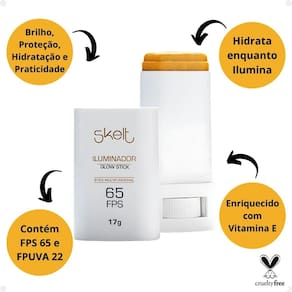 O Iluminador Multifuncional Skelt Glow Stick combina brilho, proteção, hidratação e praticidade em um único produto. Ideal para quem busca um brilho instantâneo, este stick pode ser facilmente aplicado no rosto e no corpo, oferecendo um glow sofisticado que se adapta ao seu estilo de vida agitado.