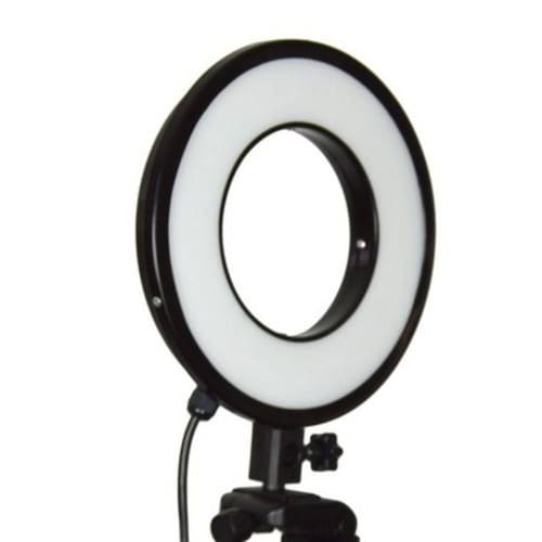 Iluminador Led Ring Light 6 Polegadas Rl6 O LED Ring Light é um iluminador led para fotografias e filmagem, suaviza a iluminação sobre o rosto de modelos, dando uma aparência super ao seu trabalho. O LED Ring Light RL6 também é ótimo para ser como luz para maquiadores. 15cm de diâmetro. Bateria 12V. Leve, fácil de transportar e de usar. Perfeito para ser como iluminação para fotografia ou maquiagem. Acompanha clipe para fixação em mesas. Modo de uso: Use o clipe para fixar o LED Ring Light em uma superfície (mesas, penteadeiras etc). Acompanha bateria 12V e cabo USB para o funcionamento.