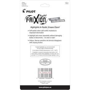 Iluminadores apagáveis PILOT, FriXion Light Pastel, ponta de cinzel, pacote com 5, azul pastel, rosa, amarelo, verde e roxo