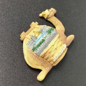 Material: Resina Tamanho: 7x4,5 cm Peso: 50 g Ímã de geladeira de resina 3D exclusivo com um camelo com uma paisagem urbana de Jerusalém, capturando a essência desta cidade histórica e culturalmente rica. Pintado à mão para uma arte vibrante e detalhada, esse ímã adiciona um toque colorido de Jerusalém à sua cozinha, escritório ou geladeira. Feito de material de resina durável, garantindo qualidade duradoura e uma impressão duradoura com seu design exclusivo. Uma lembrança perfeita de Israel, oferecendo uma miniatura detalhada dos marcos famosos de Jerusalém, como o Domo da Rocha. Medindo 7x4,5 cm e pesando apenas 50 g, esse ímã tem o tamanho ideal para exibição, mantendo uma forma leve.