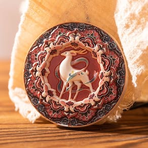 Material: madeira Tamanho: 6 x 6 cm Peso: 1000 g Design intrincado: apresenta o icônico cervo de nove cores dos antigos murais de, lindamente pintado à mão em um design de resina 3D. Lembrança cultural: Uma representação perfeita da rica herança cultural, mostrando a arte das Cavernas de Mogao em uma forma compacta de ímã. Material de resina durável: feito com resina de alta qualidade, garantindo que as cores vivas e os detalhes finos durem anos. Perfeito para colecionadores: uma lembrança ideal para quem aprecia arte antiga, história e lembranças exclusivas da China. Embalagem pronta para presente: vem em uma elegante caixa de presente de madeira, tornando-a um presente atencioso e criativo para amantes da arte ou viajantes.