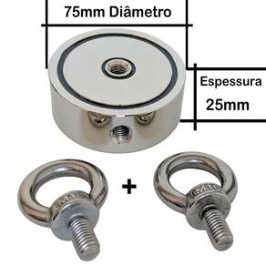 Imã De Neodímio Para Pesca Magnética Até 200 Kg De Tração na condição ideal. Diametro 75mm