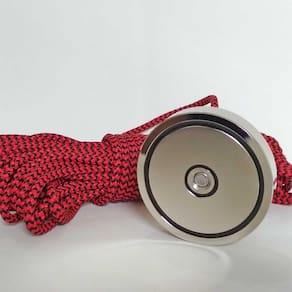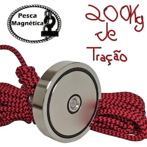 Imã De Neodímio Para Pesca Magnética Até 200 Kg De Tração .O imã ultrapassa a força que anunciamos, o produto possui certificado internacional de qualidade iso9001.Imãs de pesca magnética o conceito é diferente de um imã de alto-falante. Os dois polos do imã de pesca estão do mesmo lado, isso canaliza o fluxo magnético, ou seja o campo magnético é mais curto, porem potencializa quando um metal está em contato direto com ele.A condição ideal é em uma superfície de ferro que cubra toda a área do imã, a superfície deve ser plana, lisa e ter a espessura de pelo menor 5milimetros. A força deve ser aplicada na direção contrária a base de contato.Embalagem:1 imã de 75mm de diâmetro preparado para pesca magnética magnet fishing Marca: Fácil Negócio Importadora