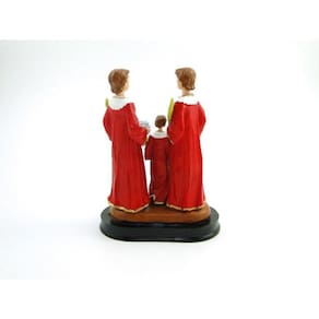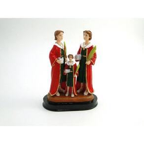 Imagem Cosme, Damião e Doum Resina 15 cm Cosme, Damião e Doum: Eram trigêmeos, mas Doum morreu ainda criança, e isso fez com que Cosme e Damião se tornassem médicos, curando as pessoas sem cobrar, apenas por caridade.Produto pintado a mão, podendo sofrer variações de cores. Marca: Amém Decoração Religiosa