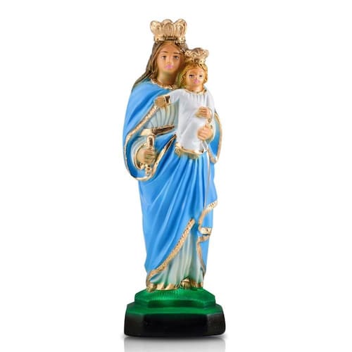 Nossa Senhora Auxiliadora - Imagem de Nossa Senhora Auxiliadora de 20cm feita em gesso cerâmico resinado ou resina super-resistente, junto com outros materiais selecionados para dar à sua imagem um alto padrão de qualidade e durabilidade.