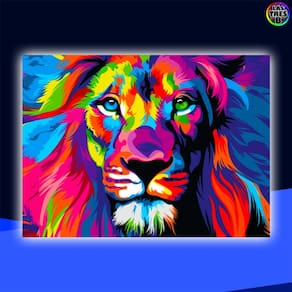Transforme seu espaço em um reino de cores vibrantes com nossa imagem de leão em PVC em uma interpretação única e colorida