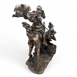 A peça é ricamente detalhada e produzida em resina de alta qualidade com acabamento em tom bronze envelhecido, transmitindo poder e imponência em cada traço. São Jorge é símbolo de fé inabalável, bravura e proteção contra todo mal. Esta imagem representa a eterna luta do bem contra o mal, sendo ideal para quem busca inspiração, proteção espiritual e fortalecimento na caminhada da vida.