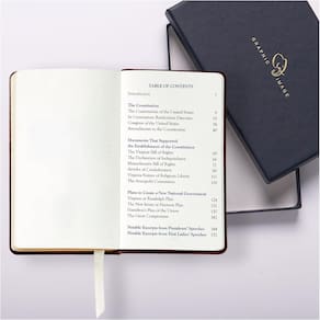 Apresentamos a Graphic Image U.S. Constitution, uma mistura perfeita de história e elegância, encadernada no melhor couro de flor integral. Este tesouro do tamanho da palma da mão contém a Constituição dos Estados Unidos, a Declaração de Direitos e todas as emendas constitucionais até os dias atuais, juntamente com trechos de discursos de presidentes e primeiras-damas inspiradores. Divirta-se com a rica história com uma seleção de documentos importantes que mostram as aspirações dos pais fundadores e perspectivas diferentes. Feito com o máximo cuidado, este item de colecionador apresenta 160 páginas branco-creme, sem ácido com bordas douradas, preservando a longevidade do conteúdo. Medindo 8 x 13 cm, o design compacto permite fácil portabilidade, enquanto o couro de flor integral e a encadernação costurada garantem durabilidade. Explore vários planos para criar um novo governo nacional de Edmund Randolph, William Patterson e Alexander Hamilton, e The Great Compromise. Orgulhosamente publicada e encadernada nos Estados Unidos da América, esta peça de qualidade de herança atende aos padrões de permanência de papel e é proveniente de recursos renováveis. A Constituição chega lindamente apresentada em uma caixa de presente exclusiva, tornando-a um presente querido para qualquer entusiasta de história. Mergulhe nas raízes dos EUA com uma impressionante variedade de documentos e descubra os fundamentos da democracia americana através desta impressionante compilação, incluindo: A Constituição dos Estados Unidos Diretiva de ratificação Congresso dos Estados Unidos Alterações à Constituição A Declaração de Direitos da Virgínia A Declaração de Independência Declaração de Direitos de Massachusetts Artigos da Confederação Estatuto da Liberdade Religiosa da Virgínia A Convenção de Annapolis Plano Virginia ou Randolph O plano New Jersey ou Paterson Plano da União de Hamilton O Grande Compromisso Trechos dos discursos dos presidentes e primeiras-damas - Luxuosa encadernação de couro de bezerro de flor integral, envelhecendo graciosamente e ficando mais bonita com o uso. Tamanho do bolso: 8 x 13 cm. - 160 páginas branco-creme, sem ácido, com bordas douradas, atendendo aos padrões ANSI/NISO Z39.48-1992 para permanência e costura smyth para resistência e longevidade. - Inclui uma impressionante variedade de documentos, revelando as ideias, aspirações e diferentes visões dos pais fundadores. - Publicado e encadernado nos Estados Unidos da América, usando papel proveniente de recursos renováveis. - Enviado em uma caixa de presente Signature Graphic Image perfeita para presentear ou adicionar à sua coleção.