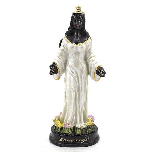 Imagem Iemanjá Preta Vestido Branco Resina 15 cm Iemanjá: De origem do idioma Yorubá Yyé omo ejá, que significam Mãe cujos filhos são como peixes. Rainha do mar e padroeira dos pescadores. Dimensões: altura: 16 cm - Largura: 7 cm - Profundidade: 5 cm Dimensões aproximadas do produto. Produto pintado a mão, podendo sofrer variações de cores. Iemanja, yemanjá, yemanja Marca: Não Informado