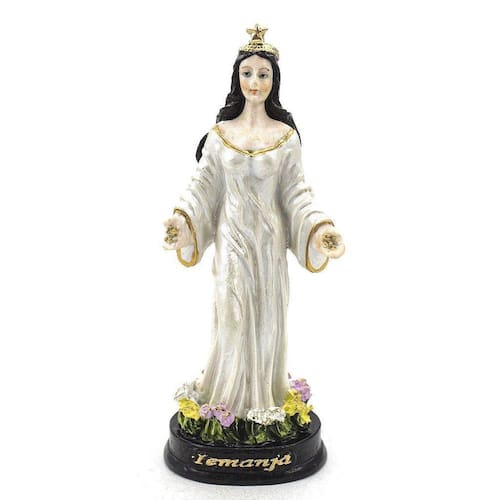 Imagem Iemanjá Vestido Branco Resina 15 cm Iemanjá: De origem do idioma Yorubá Yyé omo ejá, que significam Mãe cujos filhos são como peixes. Rainha do mar e padroeira dos pescadores. Dimensões: altura: 16 cm - Largura: 7 cm - Profundidade: 5 cm Dimensões aproximadas do produto. Produto pintado a mão, podendo sofrer variações de cores. Iemanja, yemanjá, yemanja Marca: Amém Decoração Religiosa
