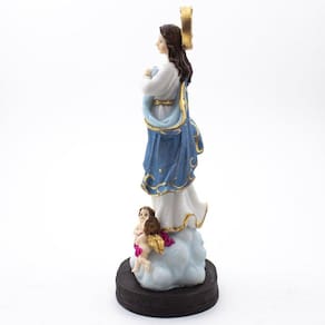 Imagem imaculada conceição resina 21 cm imaculada conceição refere-se a um dogma através do qual a igreja declarou que a concepção da virgem maria foi sem a mancha mácula em latim do pecado e declara também que a vida da virgem maria transcorreu completamente livre de pecado. Santa bernadete que viu nossa senhora em lourdes, disse que ela se auto intitulou: eu sou a imaculada conceição. Dimensões: altura: 21 cm - largura: 9 cm - profundidade: 8 cm dimensões aproximadas do produto. Produto pintado a mão, podendo sofrer variações de cores. Marca: Amém Decoração Religiosa