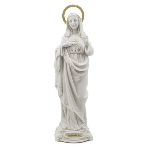 Imagem Imaculado Coração de Maria importada Resina 35 cm Uma das revelações para a devoção ao Sagrado Coração de Maria ou Imaculado Coração de Maria, ocorreu durante sua aparição em Fátima. Ela solicitou claramente a Lucia que divulgasse e propagasse a devoção. Dimensões: altura: 36 cm - Largura: 10 cm - Profundidade: 10 cm Dimensões aproximadas do produto. Produto pintado a mão, podendo sofrer variações de cores. Marca: Amém Decoração Religiosa