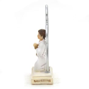 Imagem Lembranças 1 Eucaristia Menino Importada Resina 8cm 1 Eucaristia: também conhecida como Primeira Comunhão, é um sacramento da Igreja Católica em que uma pessoa recebe pela primeira vez o corpo e o sangue de Cristo na forma de pão e vinho consagrados. É considerada um dos sete sacramentos da Igreja e é geralmente realizada durante a infância, por volta dos sete ou oito anos de idade. A Eucaristia é um momento significativo na vida de um católico, pois representa a união com Cristo e a participação na comunidade da Igreja. Acredita-se que, durante a celebração da Eucaristia, o pão e o vinho se transformam no corpo e no sangue de Cristo através da consagração realizada pelo sacerdote. Dimensões: altura: 7,5 cm - Largura: 5 cm - Profundidade: 2 cm Dimensões aproximadas do produto. Produto pintado a mão, podendo sofrer variações de cores Marca: Amém Decoração Religiosa