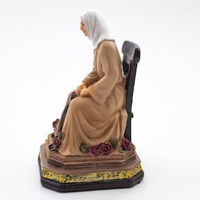Imagem Nhá Chica Sentada Importada Resina 15 cm Francisca de Paula de Jesus ou Nhá Chica, como era chamada por todos, nasceu em 1808, na Porteira dos Vilellas, povoado próximo de São Del Rei em Minas Gerais. conhecida como a mãe dos pobres, acolheu o pedido de sua mãe para seguir o caminho da fé e da caridade, tinha o piedoso costume de convidar os pobres e demais moradores da região às sextas feiras, para com ela elevarem preces à Virgem Mãe de Deus. Dimensões: altura: 14 cm - Largura: 7,5 cm - Profundidade: 8 cm Dimensões aproximadas do produto. Produto pintado a mão, podendo sofrer variações de cores. Marca: Não Informado