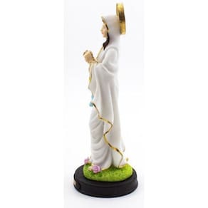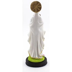Imagem Nossa Senhora de Lourdes Resina 22 cm Nossa Senhora de Lourdes é uma das atribuíções de Virgem Maria e que surgiu com relatos das aparições a Santa Bernardete Soubirous, numa gruta de Lourdes, na França. Conehcida como a padroeira dos enfermos. Dimensões: altura: 22 cm - Largura: 8 cm - Profundidade: 8 cm Dimensões aproximadas do produto. Produto pintado a mão, podendo sofrer variações de cores. Marca: Não Informado