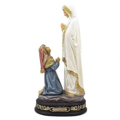 Imagem Nossa Senhora de Lourdes com Bernadete Importada Resina 32 cm