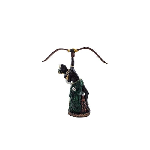 Imagem Oxóssi Resina 29 cm Oxóssi é considerado um orixá da mata que tem sobre o seu domínio o arco e a flecha. Conhecido como o Senhor da caça, floresta, animais, da fartura e do sustento. Dimensões: altura: 29 cm - Largura: 15 cm - Profundidade: 10 cm Dimensões aproximadas do produto. Produto pintado a mão, podendo sofrer variações de cores. Marca: Não Informado