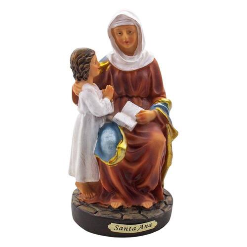 Imagem Santa Ana Importada Resina 20 cm Santa Ana ou Sant'Ana é a mãe de Nossa Senhora e avó de Jesus. É considerada como a padroeira das avós, das mulheres casadas, especialmente as grávidas, tornando seus partos rápidos e bem sucedidos. É também protetora das viúvas, dos navegantes e marceneiros. Dimensões: altura: 17 cm - Largura: 8,5 cm - Profundidade: 9 cm Dimensões aproximadas do produto. Produto pintado a mão, podendo sofrer variações de cores. Marca: Amém Decoração Religiosa Ean: 6988051035841
