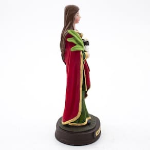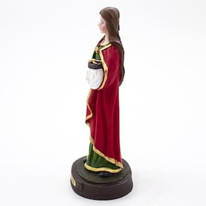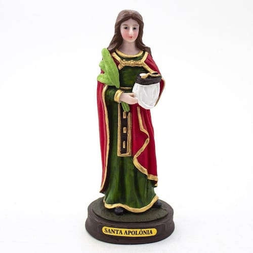 Imagem Santa Apolônia Resina 15 cm Santa Apolônia, padroeira da Odontologia, dos cirurgiões dentistas e dos que sofrem de dores na boca, viveu no tempo do império romano por volta do ano de 249. filha de um rico magistrado de Alexandria, importante cidade do Egito, fez parte de um grupo de virgens mártires brutalmente torturadas por conta de sua fé cristã. liderados pelo Imperador Décio e sob o domínio do império romano, Apolônia foi capturada e obrigada a renunciar a sua fé. tomada por uma coragem impressionante e firme na fé, negou-se a obedecer às forças do Império e teve seus dentes arrancados por pedras afiadas. Dimensões: altura: 15 cm - Largura: 6,5 cm - Profundidade: 6 cm Dimensões aproximadas do produto. Produto pintado a mão, podendo sofrer variações de cores. Apolonia, Apolônia Marca: Não Informado