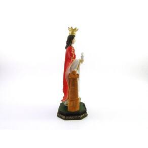 Imagem Santa Bárbara Resina 30 cm Santa Bárbara ganhou o status de protetora contra relâmpagos e tempestades, além de ser nomeada Padroeira dos artilheiros, dos mineradores e das pessoas que trabalham com fogo. Dimensões: altura: 29 cm - Largura: 13 cm - Profundidade: 10 cm Dimensões aproximadas do produto. Produto pintado a mão, podendo sofrer variações de cores. Marca: Não Informado