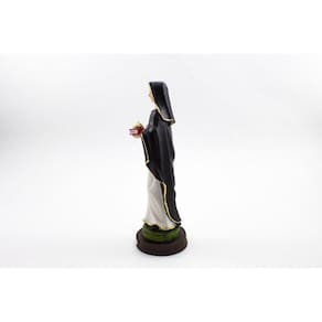 Imagem Santa Edwiges Resina 20 cm Santa Edwiges, protetora dos pobres e endividados. Diz-se que vivia com uma renda mínima, usando o restante para socorrer os pobres, enfermos, idosos, viúvas, crianças abandonadas, endividados e encarcerados, a quem ajudava pessoalmente. Dimensões: altura: 21 cm - Largura: 7 cm - Profundidade: 7 cm Dimensões aproximadas do produto. Produto pintado a mão, podendo sofrer variações de cores. Marca: Amém Decoração Religiosa Ean: 7890499231251
