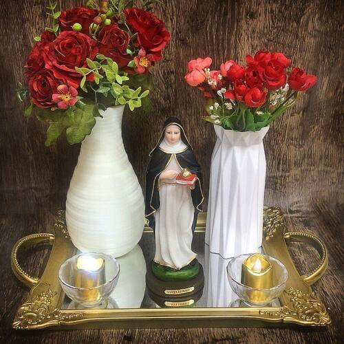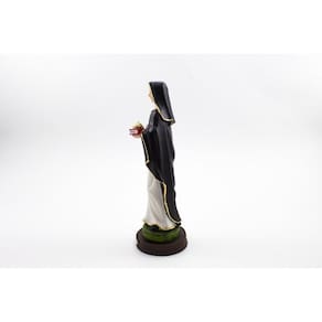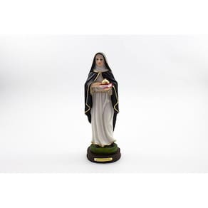 Imagem Santa Edwiges Resina 20 cm Santa Edwiges, protetora dos pobres e endividados. Diz-se que vivia com uma renda mínima, usando o restante para socorrer os pobres, enfermos, idosos, viúvas, crianças abandonadas, endividados e encarcerados, a quem ajudava pessoalmente. Dimensões: altura: 21 cm - Largura: 7 cm - Profundidade: 7 cm Dimensões aproximadas do produto. Produto pintado a mão, podendo sofrer variações de cores. Marca: Não Informado