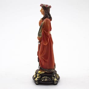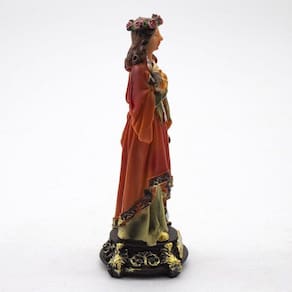 Imagem Santa Filomena Importada Resina 13 cm Santa Filomena é considerada protetora dos aflitos e dos jovens esposos; muitas vezes, proporcionou a alegria da maternidade a mães estéreis. Dimensões: altura: 13 cm - Largura: 5 cm - Profundidade: 5 cm Dimensões aproximadas do produto. Produto pintado a mão, podendo sofrer variações de cores. Marca: Amém Decoração Religiosa Ean: 6988051078268