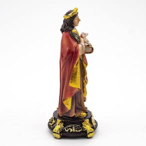 Imagem Santa Inês Importada Resina 12,5 cm Entre as primeiras mártires da era cristã, Inês é uma das santas mais populares na tradição da Igreja. Sacrificou sua vida com treze anos, durante as perseguições do IV século, por não renegar a Cristo. Venerada nos séculos como ícone de pureza, Santa Inês é celebrada pela Igreja em 21 de janeiro. É considerada a padroeira da pureza e castidade, dos jardineiros, moças, noivos. Dimensões: altura: 12,5 cm - Largura: 5 cm - Profundidade: 5 cm Dimensões aproximadas do produto. Produto pintado a mão, podendo sofrer variações de cores. Ines, inez, inêz Marca: Amém Decoração Religiosa Ean: 6988051059502